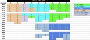 Team A has the registered last and selects first, and is on the clock (1 minute to decide) . They select the 5th seed on the schedule so they can start at a later time. Team B is up next, and selects the 1st seed to avoid being in the same pool as Team A. Team C is up next, and decides they want to bump Team A out of their spot and steals the 5th seed. Team A then is forced to take an open spot on the board, and selects the 2nd seed place themselves in the same pool as Team B who they think they matchup well against. This continues all the way through the draft until the last 3 teams are left. The only rule exception is that if any of the top teams (top 3 teams for divisions with 19 or less teams; top 4 teams for divisions 20+ teams; top 5 teams for divisions with 30+ teams) get bumped out of their spot, they are allowed to bump again. So if Team Z has the registered first and is the last to draft and bumps Team X out of their spot who was also one of the top teams, Team X would be allowed to bump another team out so they’re not stuck with the only open spot on the board having earned one of the top team spots draft position. The team they bump would have to take the last open spot on the board, and the draft would be complete! It is a fun way to select spot and gives each team some input on when, where and who they play!