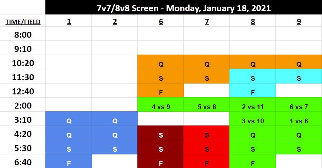 Pool Play Seeding is based on when you select your first game during the draft. All teams with 5 or more teams in their division will battle to select their placement on the schedule, where you’ll have a say in who you play, what time and on what field. Captains will select which seed they want on the schedule in reverse order of their Ranking Points, and you can take any spot on the board, bumping out another team if desired, who would be forced to take an open spot.