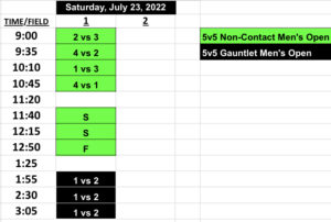 Pool Play Seeding is based on when you select your first game during the draft. All teams with 4 or more teams in their division will battle to select their placement on the schedule, where you’ll have a say in who you play, what time and on what field. Captains will select which seed they want on the schedule in reverse order of their registration date, and you can take any spot on the board, bumping out another team if desired, who would be forced to take an open spot.