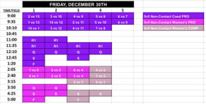 Team A has the registered last and selects first, and is on the clock (1 minute to decide) . They select the 5th seed on the schedule so they can start at a later time. Team B is up next, and selects the 1st seed to avoid being in the same pool as Team A. Team C is up next, and decides they want to bump Team A out of their spot and steals the 5th seed. Team A then is forced to take an open spot on the board, and selects the 2nd seed to place themselves in the same pool as Team B who they think they matchup well against. This continues all the way through the draft until the last 3 teams are left. The only rule exception is that if any of the top teams (top 3 teams for divisions with 19 or less teams; top 4 teams for divisions 20+ teams; top 5 teams for divisions with 30+ teams) get bumped out of their spot, they are allowed to bump again. So if Team Z has the registered first and is the last to draft and bumps Team X out of their spot who was also one of the top teams, Team X would be allowed to bump another team out so they’re not stuck with the only open spot on the board having earned one of the top team spots draft position. The team they bump would have to take the last open spot on the board, and the draft would be complete! It is a fun way to select a spot and gives each team some input on when, where and who they play!