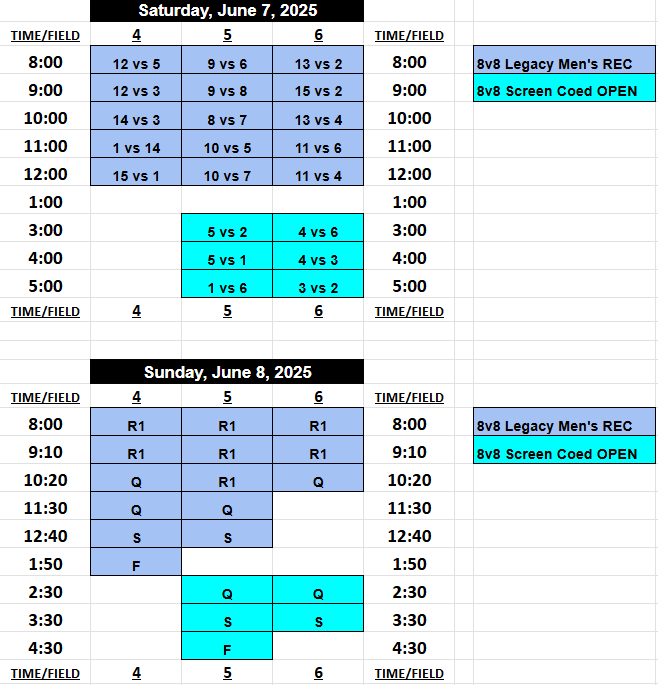 8v8 Legacy and 8v8  Screen Coed Matchups