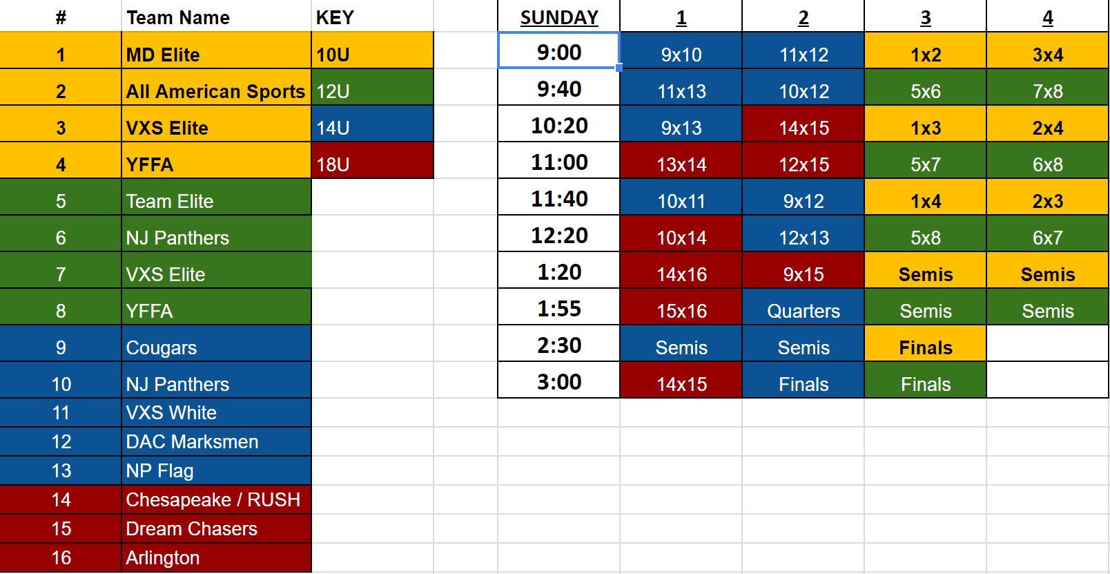 Games played Sunday afternoon – 3 Game Guarantee Style Bracket