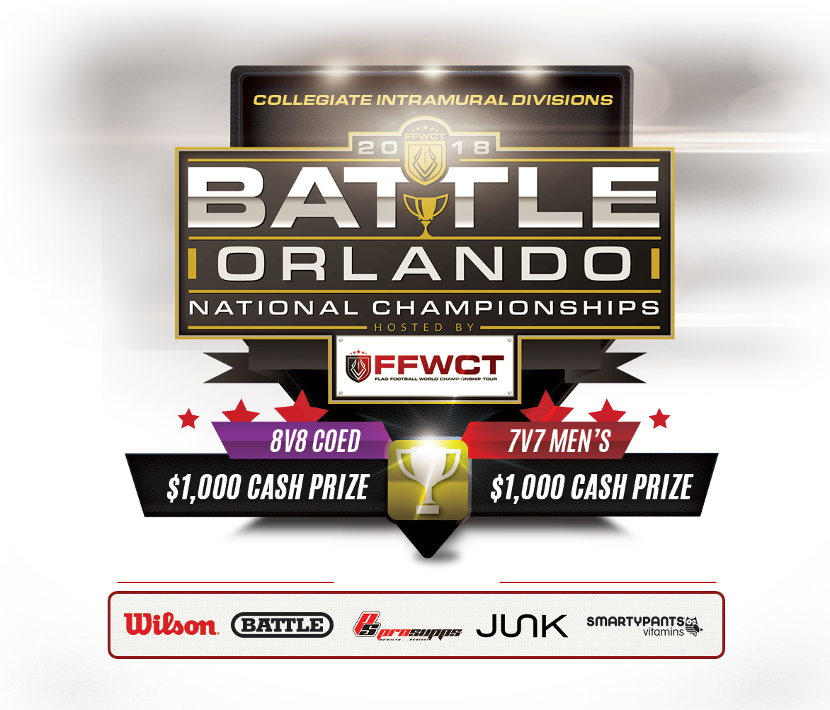 Register now for the 2019 Battle Orlando Collegiate Intramural Flag Football National Championships held on January 19-20, 2019 in Orlando, Florida!