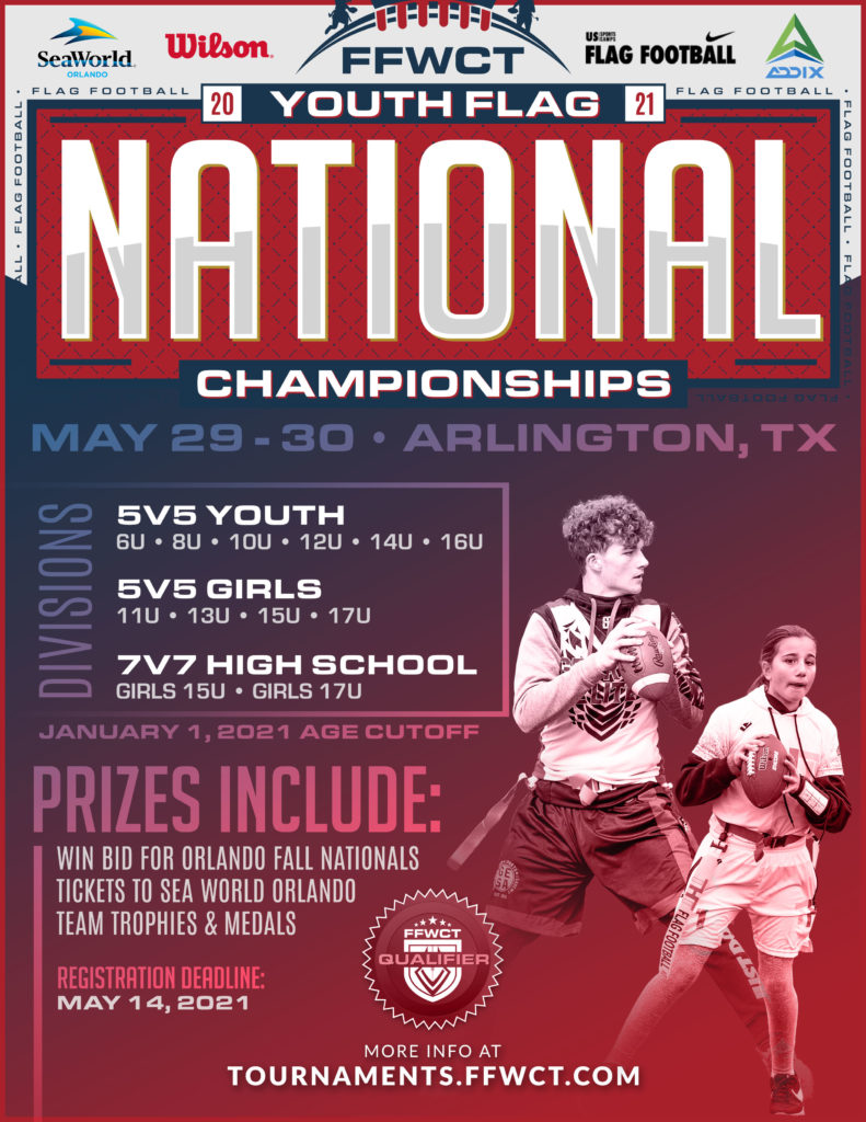 ALL TEAMS will use Sonic Flag-a-Tag flags, Youth Shruumz or youth size NFL poppers