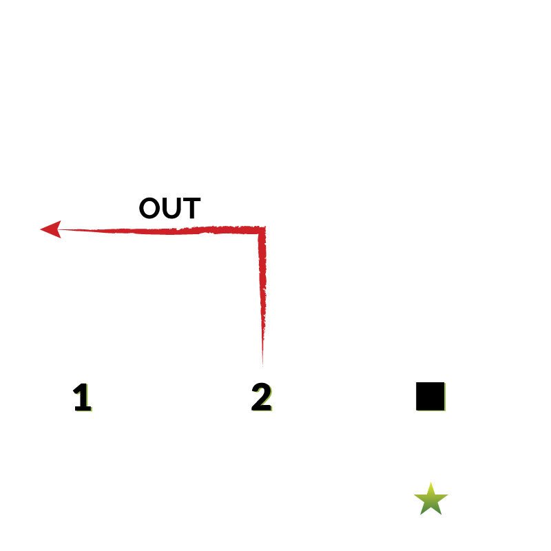 Another of the common flag football routes, “Out” routes are as simple as they come. Always clarify how deep the quarterback wants the route run, as you can run it at almost any distance, whether it be 3, 5, 8 10, 15 or 20 yards even depending on the quarterback. Always run towards the sideline, essentially the opposite of a dig route.