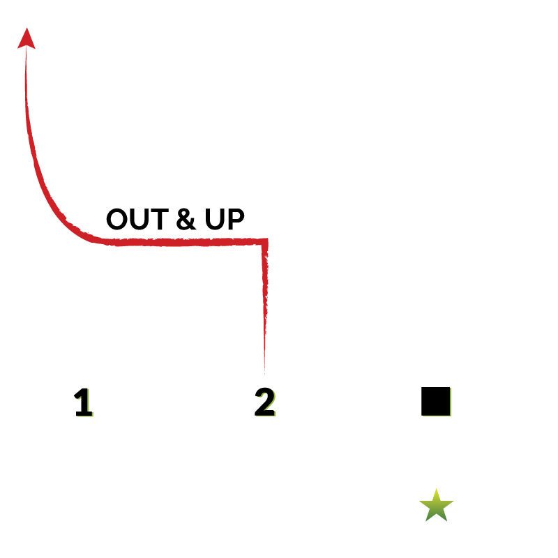Fake the “Out” route, and wheel up the sideline. Again it can be run at any depth, and works great with a quarterback who can effectively pump fake and buy time as it may take a couple extra seconds to process. Another common variation of this play, is if you know the defender won’t bite and just sits over the top waiting for the out & up, thrown in a stop route at the end at around 12-15 yards to mix it up and keep them honest.