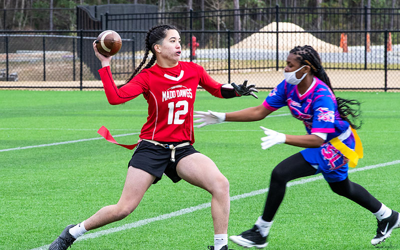 Female varsity flag football is now a collegiate and sport at many NAIA and NJCAA schools. We have an open 7v7 division for tournament play.