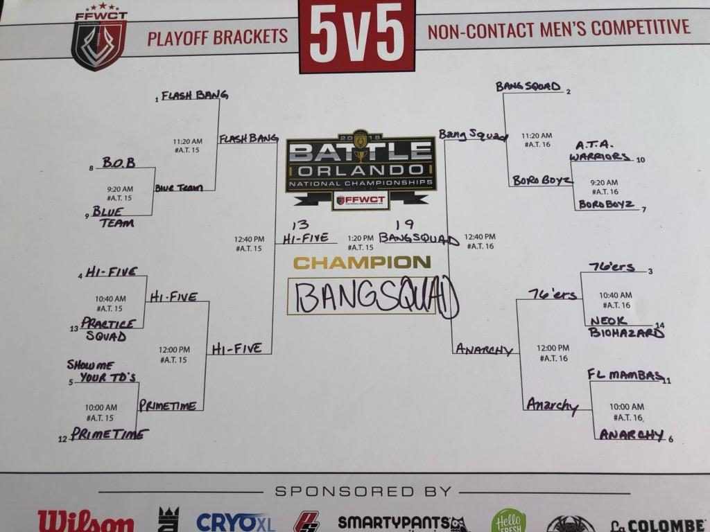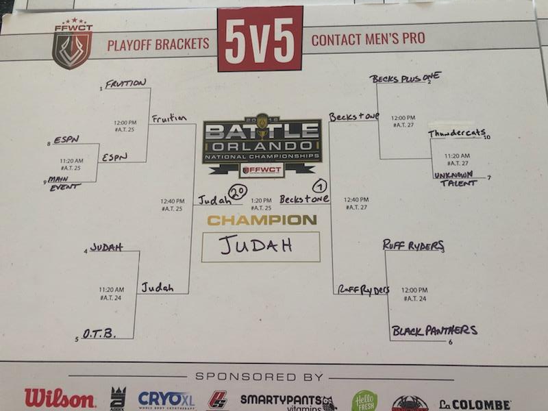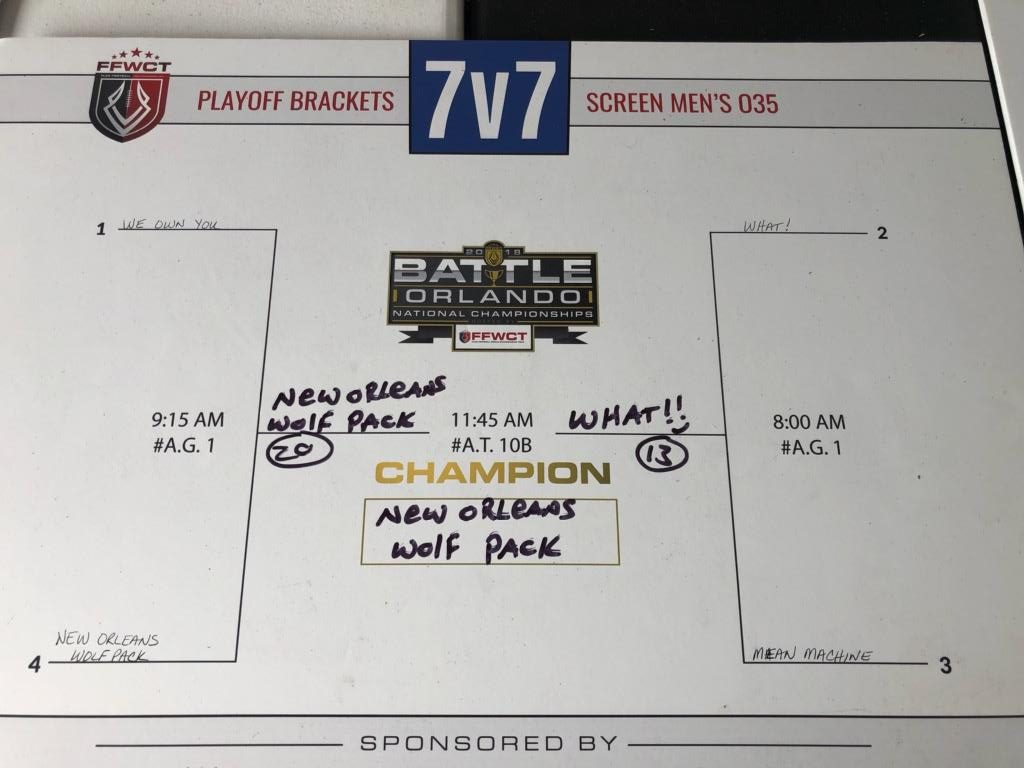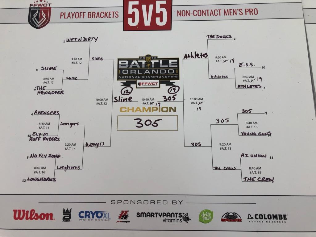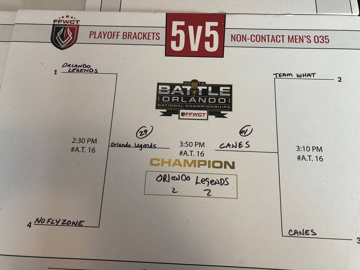 The 2018 FFWCT Battle Orlando National Championship results are in after an amazing tournament that featured 521 adult teams and 179 youth teams from all over the world participating at the beautiful Austin Tindall Sports Complex in Orlando, FL this past weekend! Players experienced amazing weather, got to mingle with sponsors and vendors at the Draft Meeting at House of Blues, as well as on-site, and play against some of the top competition in the world! Below are the final results. Click the button below to view a spreadsheet with full standings and Battle⢠Points earned.