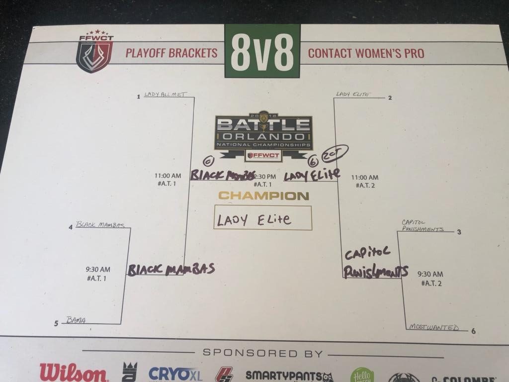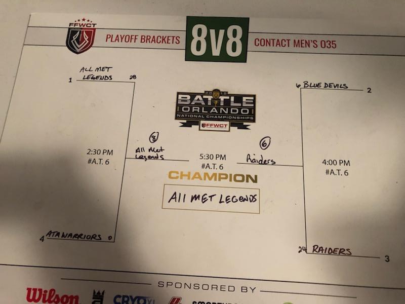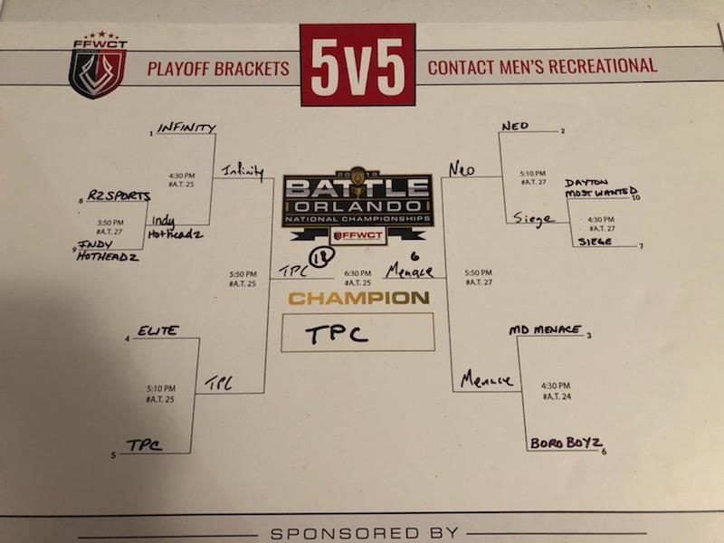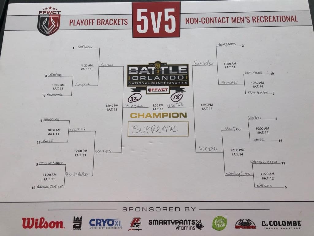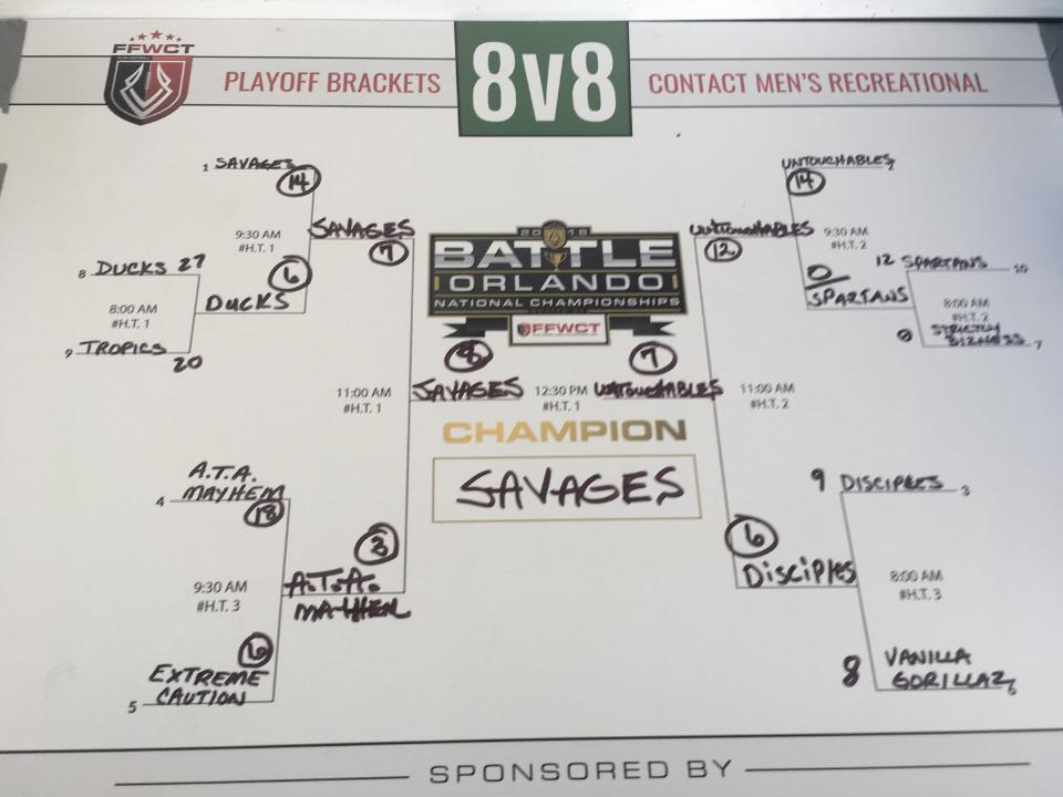 The 2018 FFWCT Battle Orlando National Championship results are in after an amazing tournament that featured 521 adult teams and 179 youth teams from all over the world participating at the beautiful Austin Tindall Sports Complex in Orlando, FL this past weekend! Players experienced amazing weather, got to mingle with sponsors and vendors at the Draft Meeting at House of Blues, as well as on-site, and play against some of the top competition in the world! Below are the final results. Click the button below to view a spreadsheet with full standings and Battle⢠Points earned.