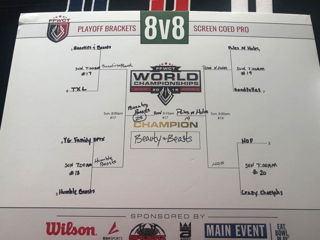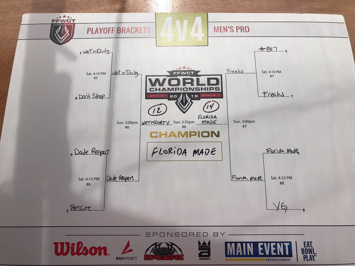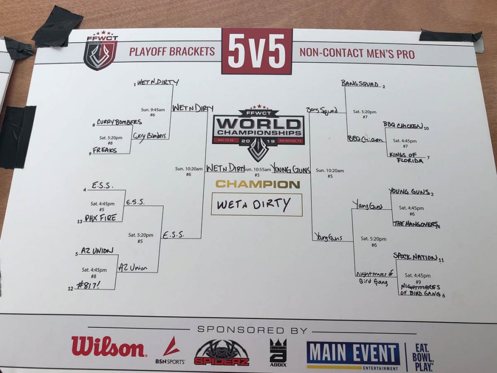 The 2019 FFWCT Battle World Championship results are in after an amazing tournament that featured over 200 adult teams and youth teams from all over the world participating at the beautiful Harold Patterson Sports Center in Arlington, TX this past weekend! Players experienced amazing weather, got to mingle with sponsors and vendors, and play against some of the top competition in the world! Below are the final results. Click the button below to view a spreadsheet with full standings and Battle⢠Points earned.
