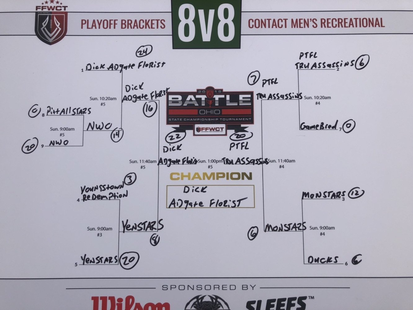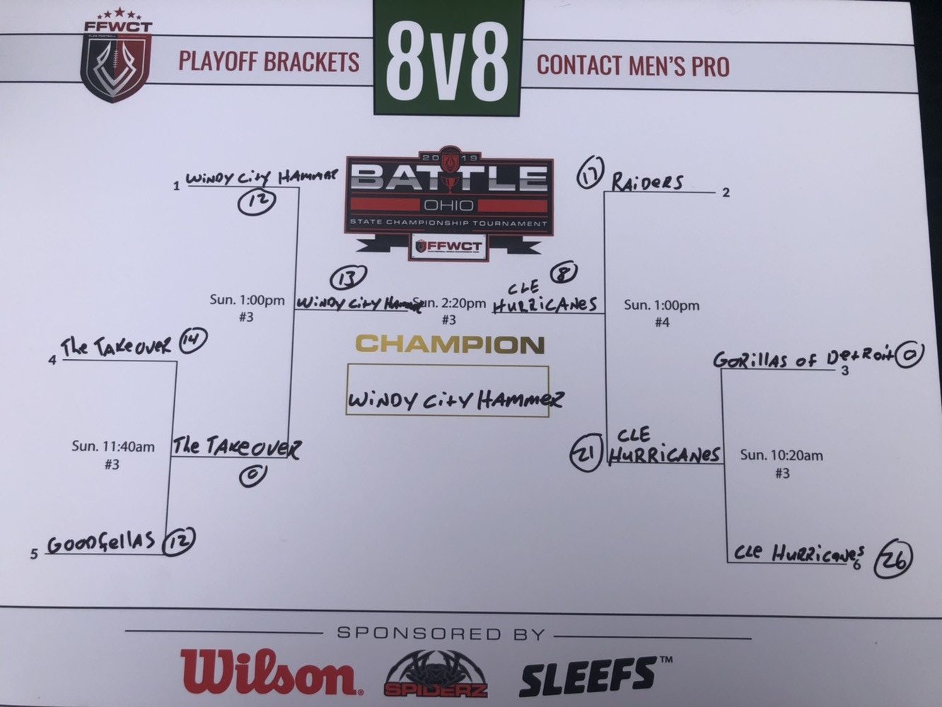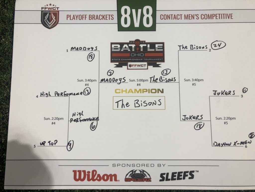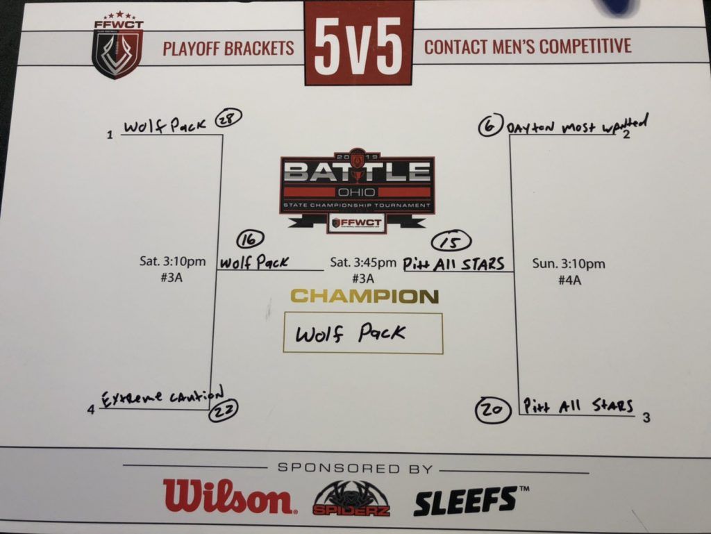 2019 Battle Ohio Championships had a total of 33 teams compete in divisions of 8v8 Contact Men’s and 5v5 Contact Men’s