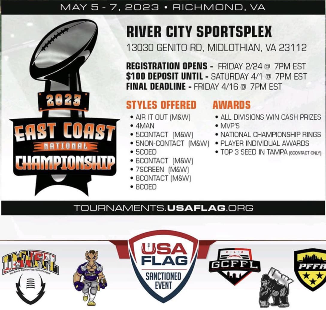 8v8 Contact Men's Competitive - $2,500* Full Cash Prize at 12+ teams, if less $150 per team entered