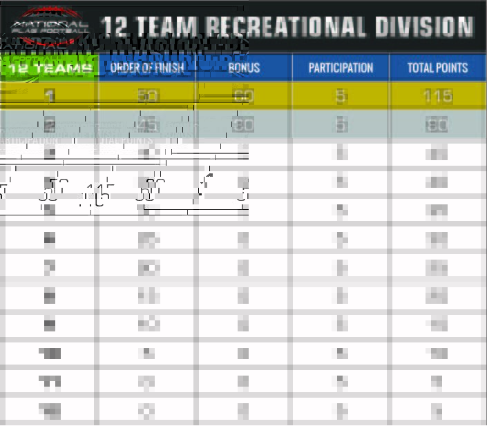 - Champions Points are awarded to teams who place in the top 10 of each division at a FFWCT powered by National Flag Football affiliated tournament, per the chart below.